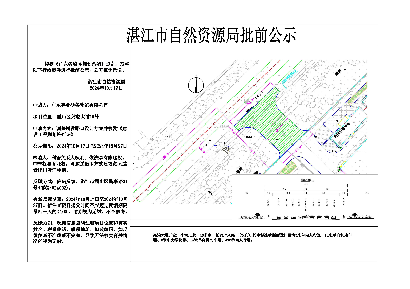 广东嘉业储备物流有限公司调整路口设计方案并核发《建设工程规划许可证》