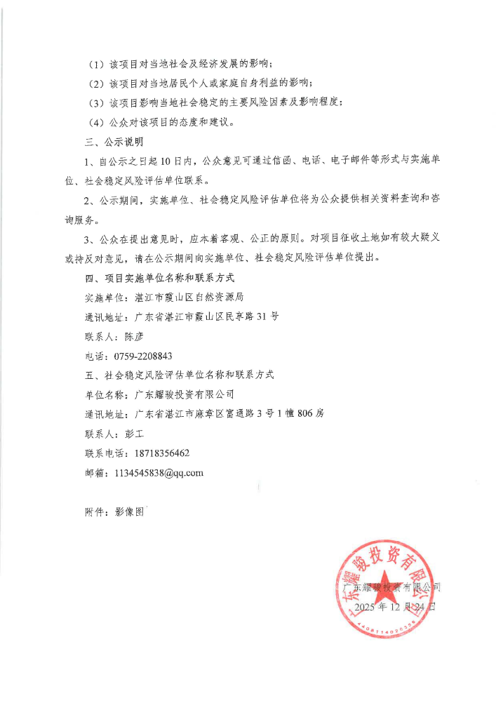 湛江市霞山区2025年度第二十二批次城镇建设用地土地征收社会稳定风险评估公众参与公示