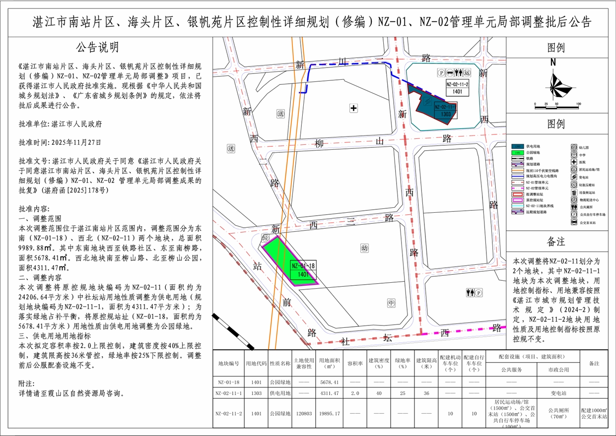《湛江市南站片区、海头片区、银帆苑片区控制性详细规划(修编)》NZ-01、NZ-02管理单元局部调整批后公告
