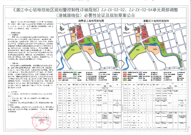 《湛江中心站枢纽地区规划暨控制性详细规划》ZJ-ZX-02-02、ZJ-ZX-02-04单元局部调整(港城路线位)必要性论证及规划草案公示