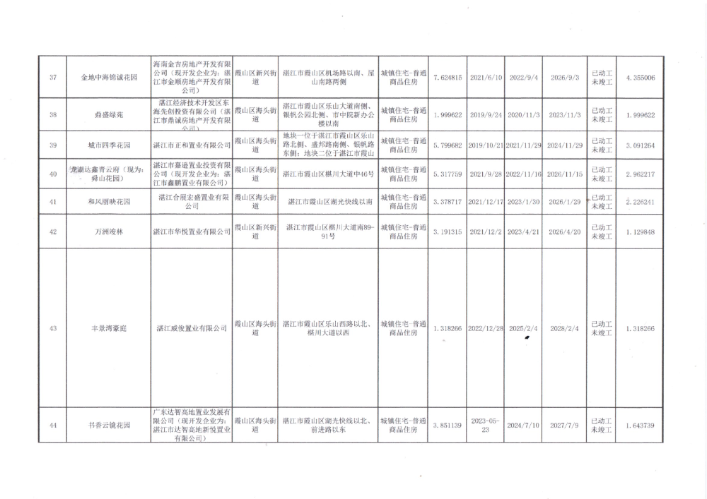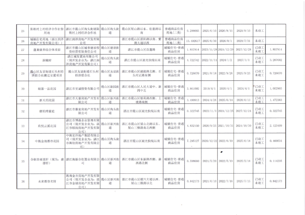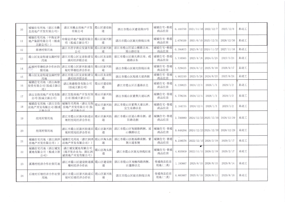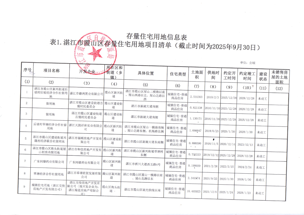湛江市霞山区2025年第三季度存量住宅用地信息公示