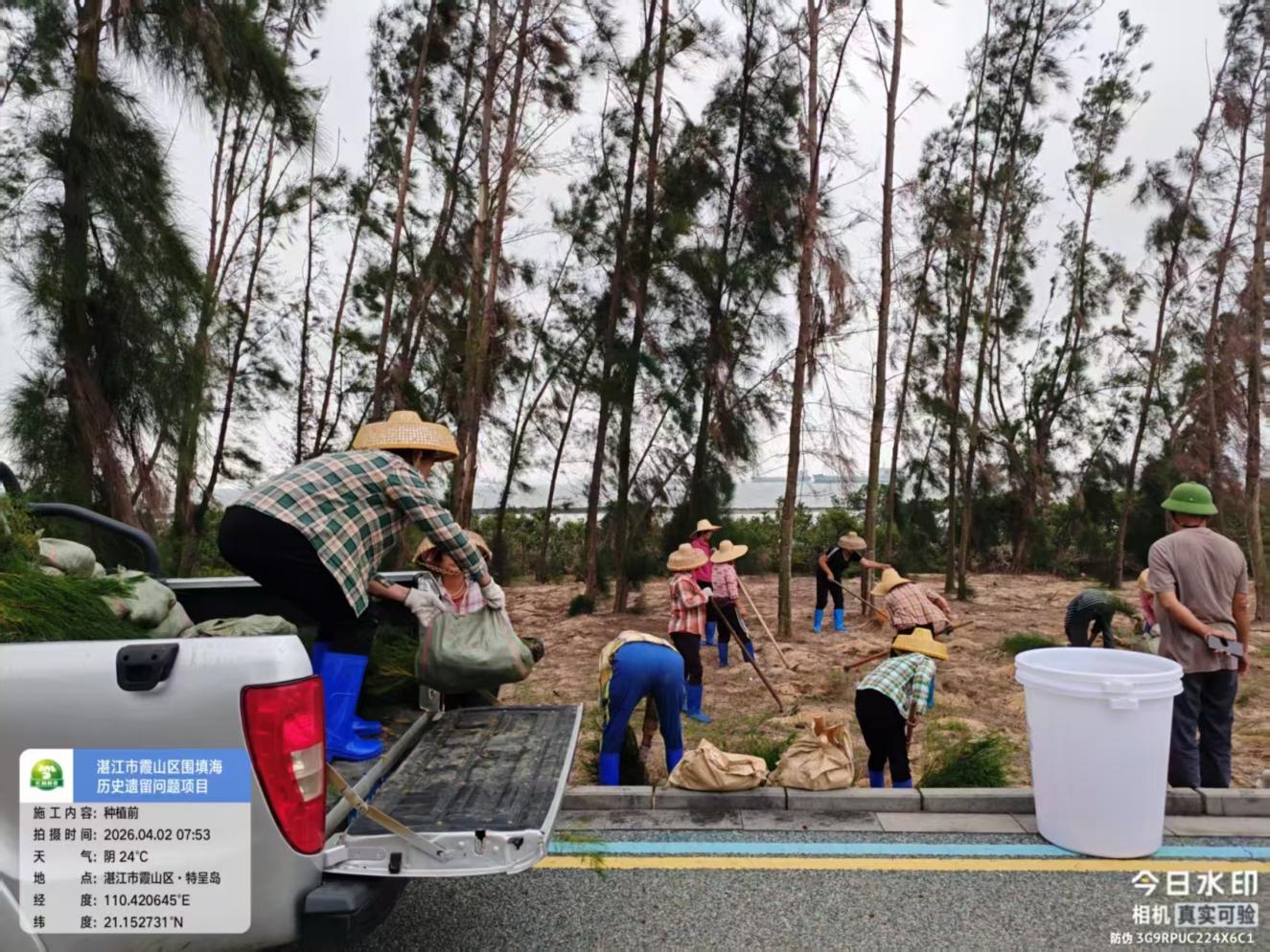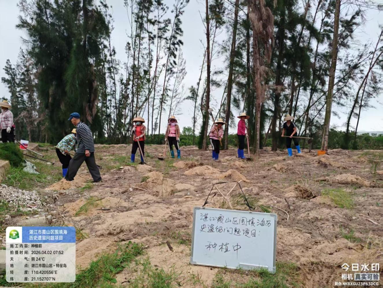 4月2日至3日,霞山区自然资源局组织工作人员与施工队伍,在特呈岛区域开展围填海历史遗留问题生态修复项目,完成防风林补种面积1000平方米。