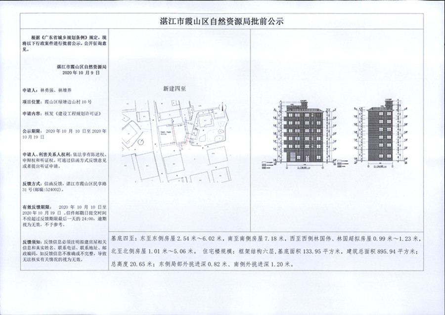 霞山区绿塘边山村10号(林勇强、林增养) 新建房屋核发《建设工程规划许可证》批前公示