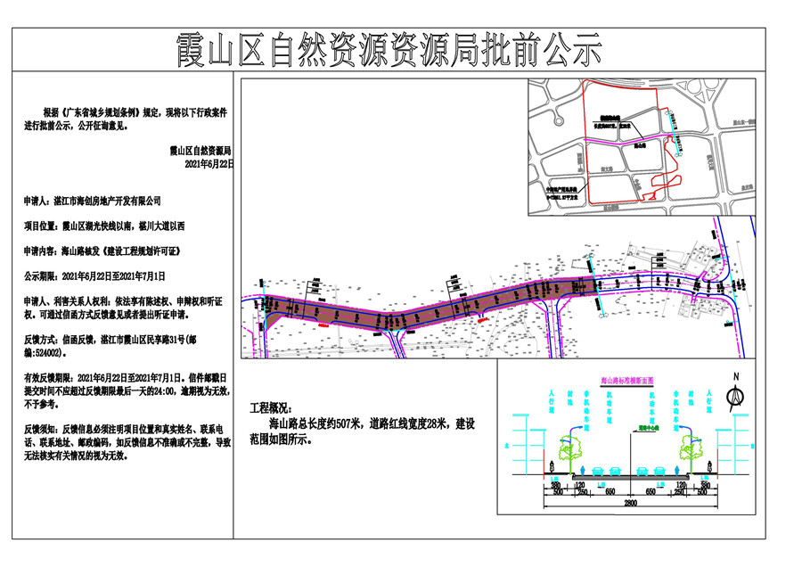 关于核发海山路《建设工程规划许可证》批前公示