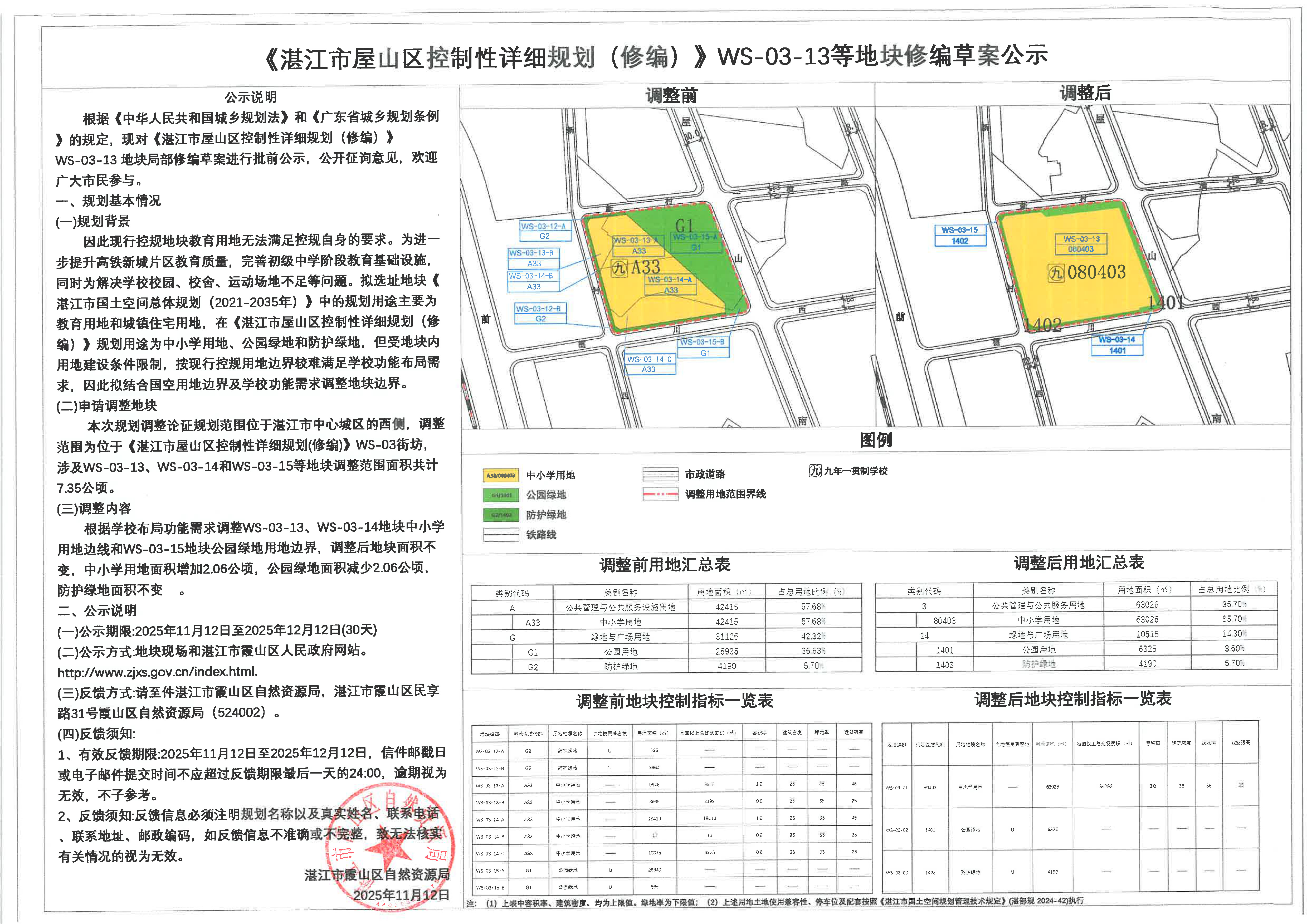 《湛江市屋山区控制性详细规划(修编)》WS-03-13等地块控规修编草案公示