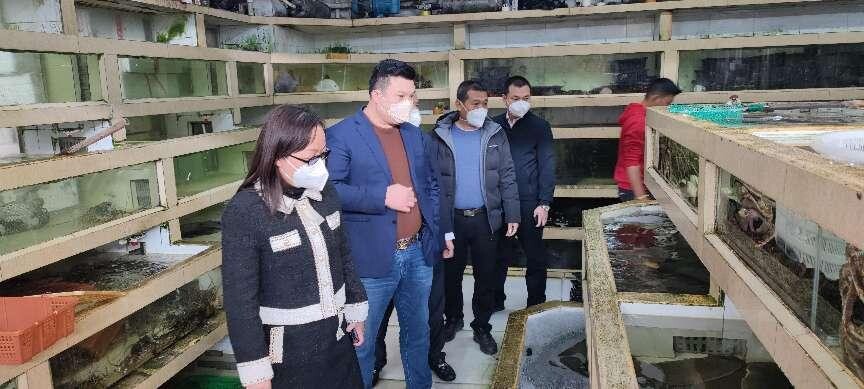 街道党工委书记刘锋华、人大工委主任钟正才、办事处副主任黄昌谋等人走进霞山水产品批发市场等企业,实地考察海产品企业的经营发展情况。在海产品企业人士的带领下,与海鲜销售商铺负责人深入交谈,认真了解市场行情,仔细倾听经营情况。经介绍,疫情期间市场上对海鲜的需求下降明显,多数商铺处于亏损状态,经历三年困难经营期,在2023年元旦春节期间海鲜市场需求快速增长,经营转亏为盈,经济逐步复苏。