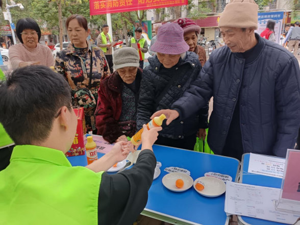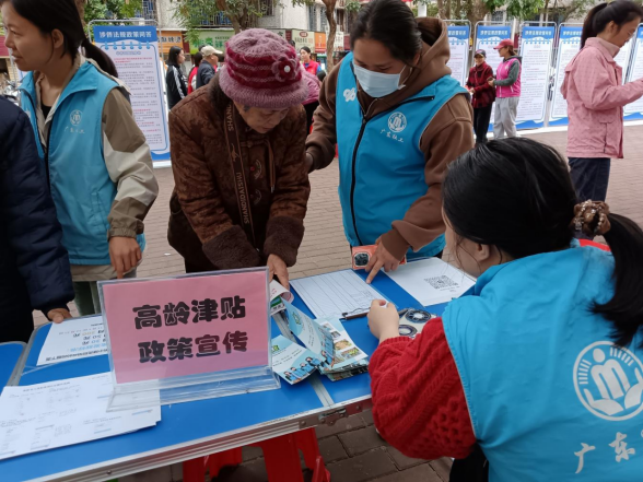 为进一步提高社区长者对惠老政策的知晓率,让社区老年人了解政策,让符合条件的老人享受政策,积极营造敬老爱老尊老的社区氛围,2025年11月20日下午,在霞山区民政局、霞山区老龄办和海滨街道办的指导下,海滨街道社工协会党支部联合海宁社区党群服务中心、海昌社区党支部、海滨街道居家养老服务中心、中国人寿在海滨街道运动文化主题公园开展2025年海滨街道“政策普万家,暖意入民心”宣传活动,约40名居民参加了此项活动。