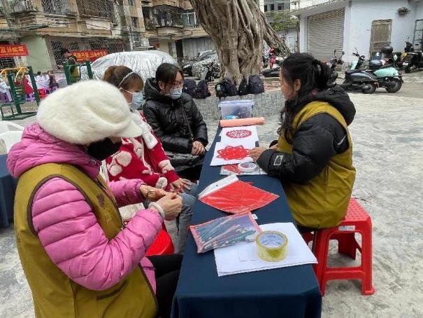 文化体验区:红纸翻飞,剪刀轻舞,居民在志工指导下亲手剪出精美窗花;墨香四溢,笔走龙蛇,书法爱好者现场书写春联,送上真挚的新春祝福。