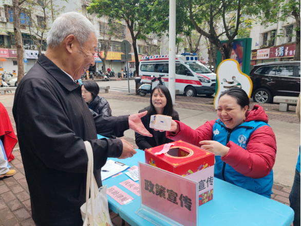 为打通服务群众的“最后一公里”,海滨街道社工协会党支部的社工在现场设立了咨询服务台,积极开展民政服务政策宣传。通过游戏的方式,向居民详细解读低保、高龄津贴、居民医保、残疾人两项补贴等与群众切身利益相关的惠民政策。面对居民的提问,工作人员耐心倾听,用通俗易懂的语言讲清政策内容、申请条件和办理流程,确保党和政府的温暖关怀精准传递到每一位需要的群众手中。