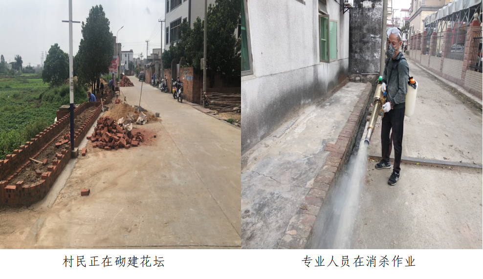 第三,全面整治人居环境,阻断病毒传播途径。开展声势浩大的人居环境综合整治活动,发动党员干部带头清理庭院卫生、房前屋后的乱堆乱放及卫生死角,集中清运垃圾废物、建筑垃圾,对垃圾屋周边、戏楼广场、村内主道进行全面清扫保洁。花6000元聘用勤洁清洁服务公司,对村内各个角落进行消杀,反复消杀了排污沟、厕所等重点部位,减少蚊蝇滋生。规划建设村前绿化带,组织村民分段施工,砌成花坛约400米,即将栽种花草,美化环境,将彻底改变农田周边杂草丛生、垃圾乱丢的状况。