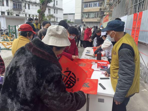 文化体验区:红纸翻飞,剪刀轻舞,居民在志工指导下亲手剪出精美窗花;墨香四溢,笔走龙蛇,书法爱好者现场书写春联,送上真挚的新春祝福。