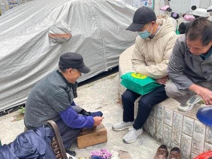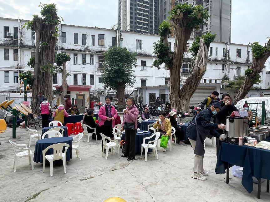 暖心休息区:姜茶暖胃,糕点香甜,居民在此小憩交流,感受社区大家庭的温暖。
