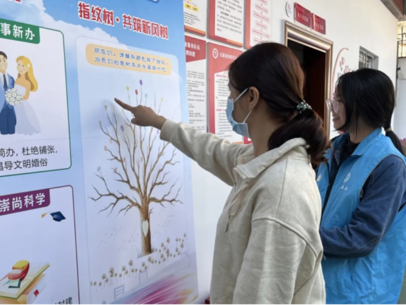 活动现场设置了多个互动体验环节,深受居民喜爱。“新风拼图大作战”“垃圾分类大闯关”“套走陋习圈文明”等游戏,让居民在沉浸式体验中深化对新风尚的理解;“文明公约承诺墙”互动,居民通过在“爱心墙”写下新风承诺,在“指纹树”上按下指印,实现从“被动遵守”到“主动践行”的转变,形成新风共识。