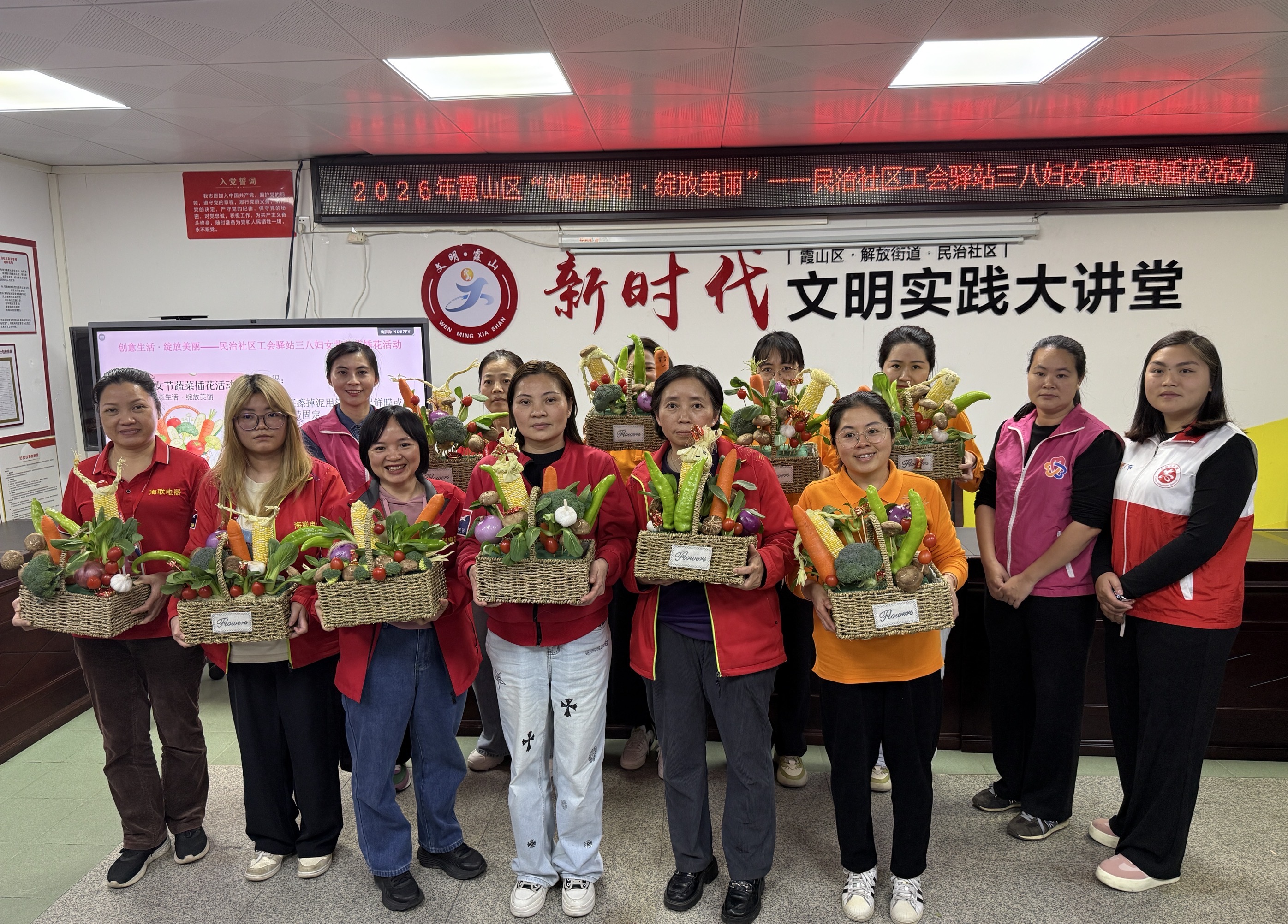 春风送暖,巾帼添彩。在三八国际妇女节即将来临之际,为丰富社区新就业形态劳动者的精神文化生活,让大家在繁忙的生活中感受创意之美,收获温馨与快乐,民治社区工会驿站特意邀请10名新就业形态女性劳动者举办“创意生活·绽放美丽”蔬菜插花活动。旨在引导大家感受生活之美,体验动手的乐趣,展现新时代女性积极向上、热爱生活的精神风貌,营造温馨和谐、文明友爱的社区氛围。