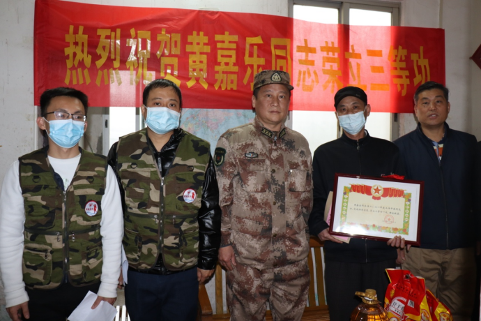 为立功受奖军人黄嘉乐同志的家属送上立功喜报、慰问金及慰问品