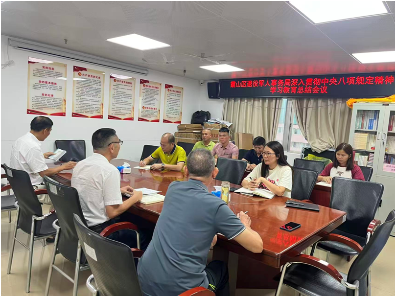 2025年9月29日,霞山区退役军人事务局组织召开深入贯彻中央八项规定精神学习教育总结会议,传达学习习近平总书记关于深入贯彻中央八项规定精神学习教育的重要讲话和重要指示批示精神,传达学习中央及省委、市委、区委党的建设工作领导小组会议精神,总结我局学习教育开展情况。