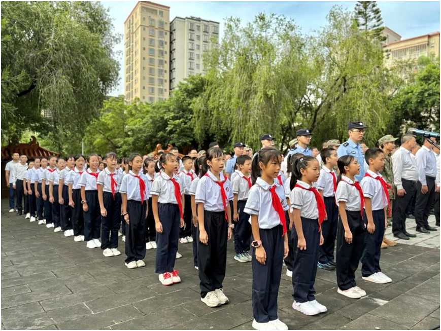 激昂的国歌声在陵园上空回荡