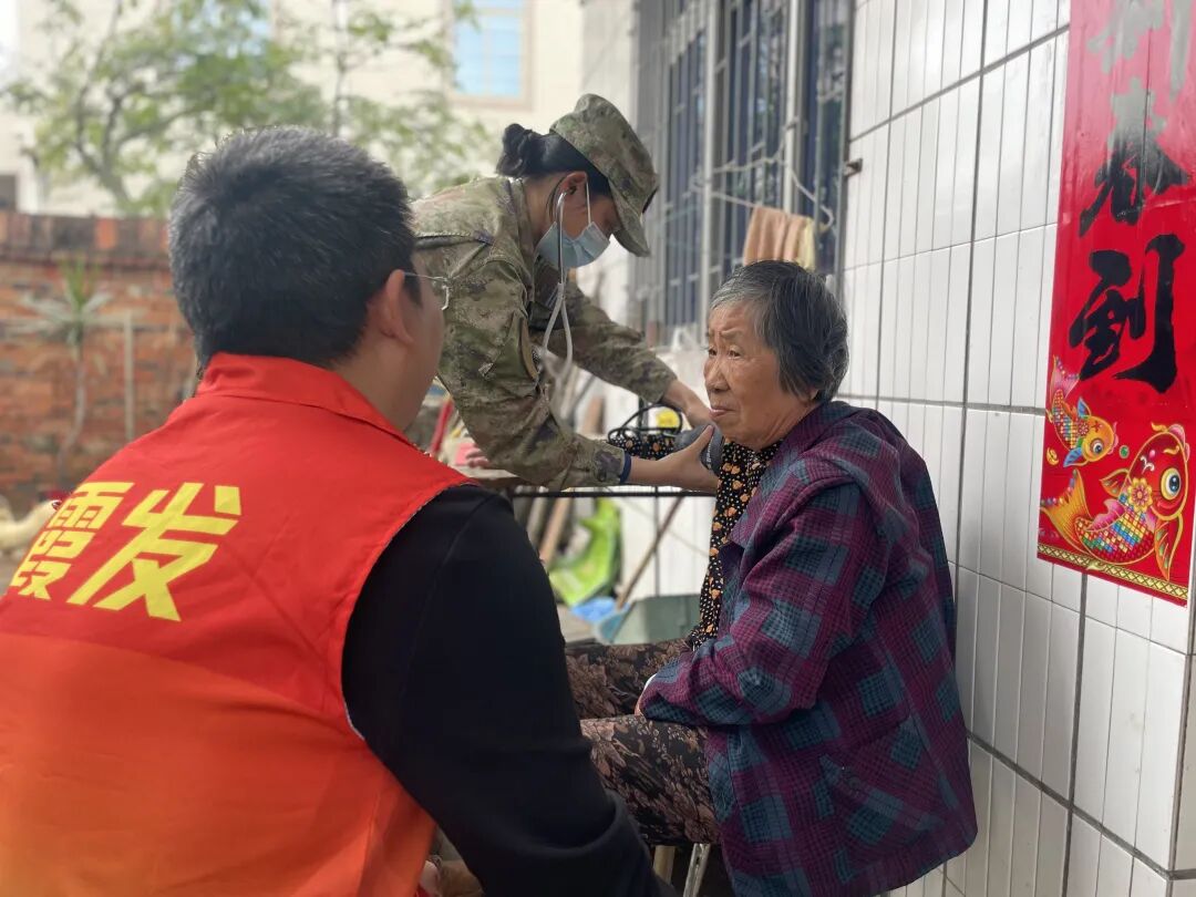 针对岛上部分行动不便的老人,92980部队医护人员在霞发集团党员志愿者陪同下,专程前往村民家中开展上门义诊。医护人员仔细为老人检查身体、询问病史,讲解春季保健知识。村民感动地说:“我腿脚不好,去一趟医院不容易,没想到你们还专门跑一趟,真是太感谢了!”