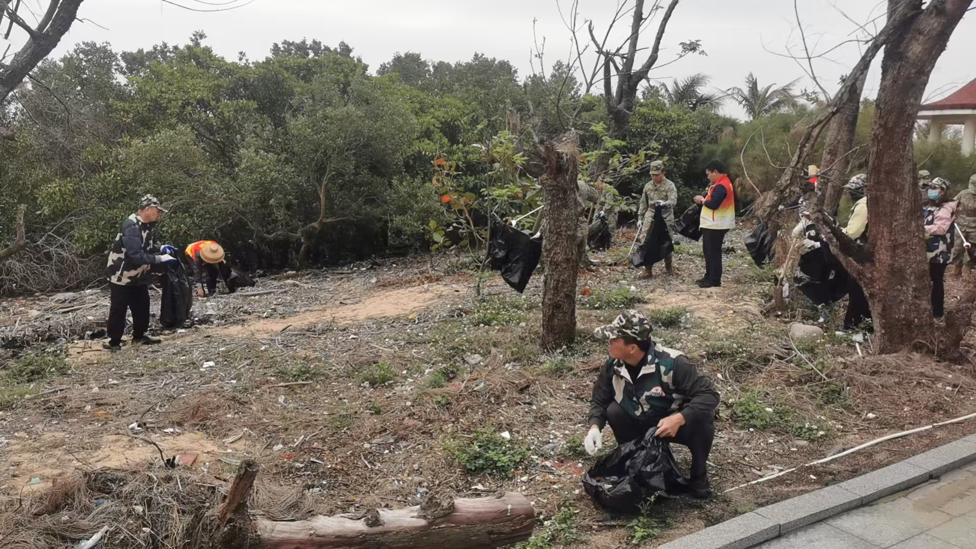 在西海岸观景平台至里村文化楼滩涂区、红树林浅滩湿地带,志愿者们干得热火朝天。霞发集团党支部党员与92980部队官兵、退役军人事务局干部职工分工协作,手持夹钳、环保袋,认真清理塑料、枯枝等杂物。经过大家共同努力,海岸线重现洁净,红树林湿地生态更显清朗,为村民和游客营造了宜人环境。