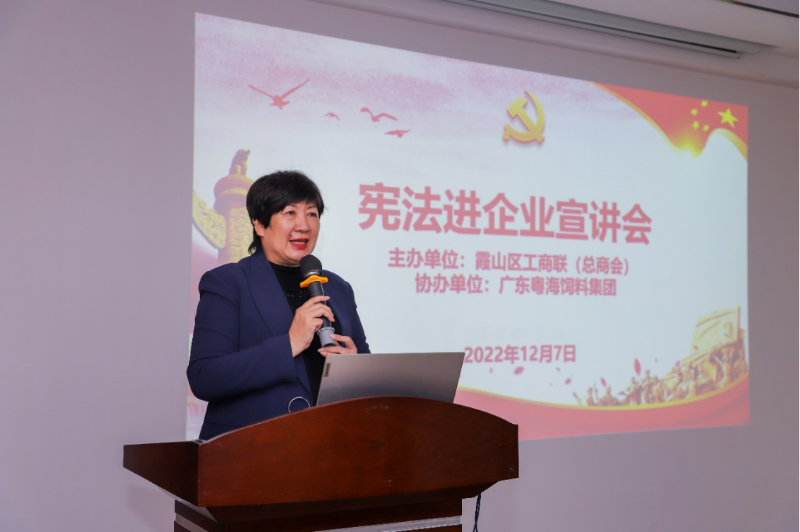 为进一步弘扬宪法精神,维护宪法权威,12月7日,霞山区工商联(总商会)联合广东粤海饲料集团股份有限公司组织开展“宪法进企业”主题活动。区工商联(总商会)主席(会长)周小萍,本季度轮值副主席(副会长)徐雪梅、曾蓉、何细弟、余东瑺,粤海饲料集团股份有限公司部分员工参加活动。