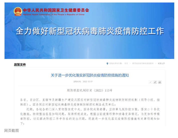 发布时间 : 2022-12-08 15:16来源 : 国家卫健委网站 新华社
