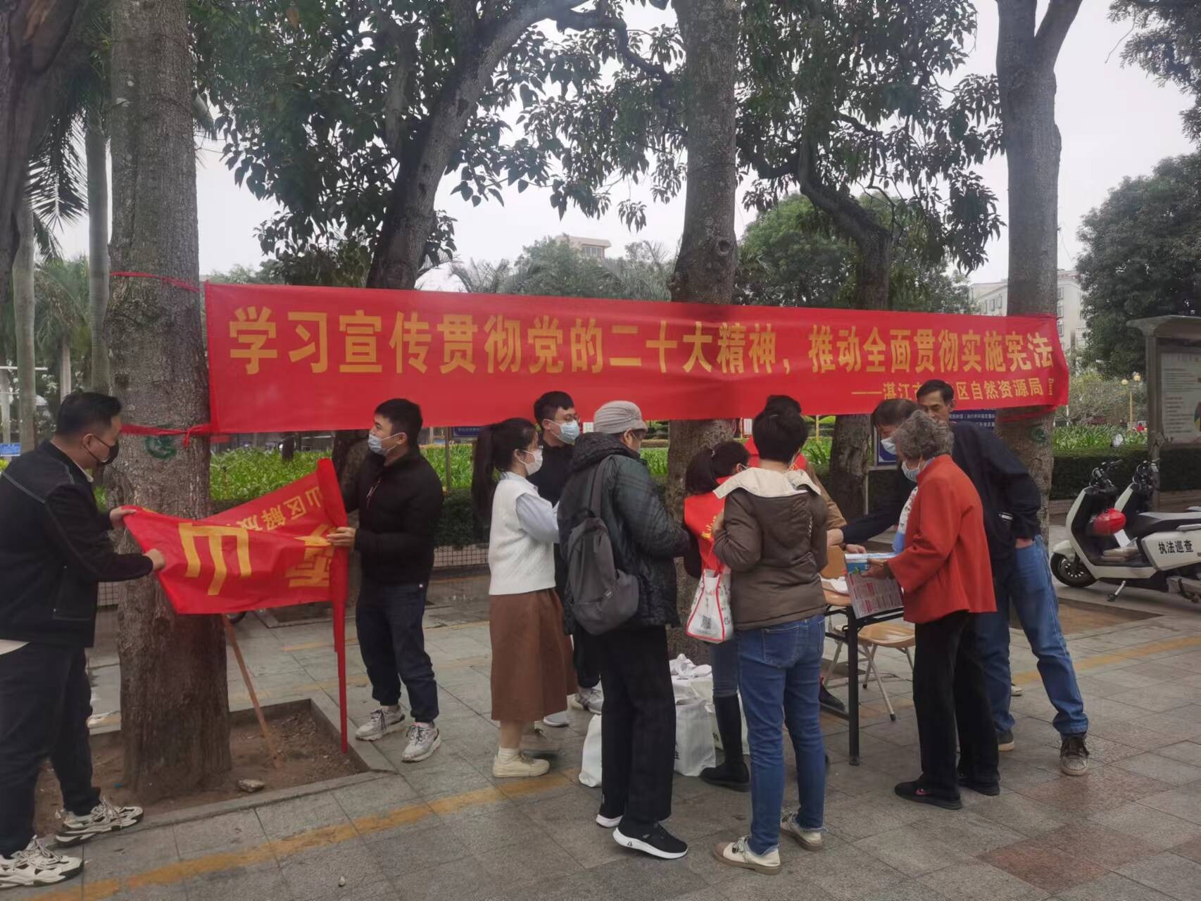 为进一步学习宣传党的二十大精神和弘扬宪法精神,积极开展宪法宣传周暨法治宣传教育月活动,努力营造尊崇宪法、学习宪法、遵守宪法、维护宪法、运用宪法的良好法治氛围,2022年12月7日,霞山区自然资源局以“学习宣传党的二十大精神,推动全面贯彻实施宪法”为主题,到人民公园开展“国家宪法日”法治宣传活动。