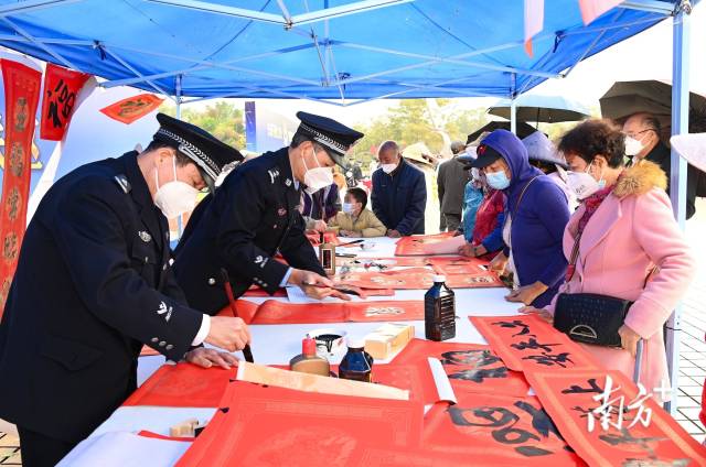 为拉近警民距离,活动还设置了警民互动环节,利用问答的形式,增强了群众对110和12345政务服务热线使用范围的意识。同时,湛江书法协会在现场挥毫泼墨,吸引市民积极参与。