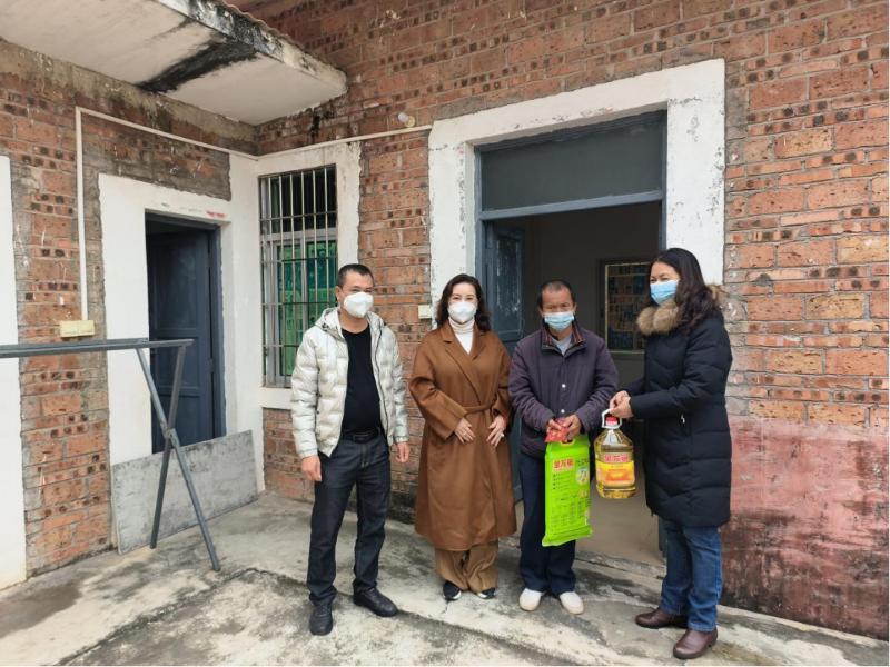 1月17日上午,霞山区委统战部副部长、区工商联党组书记、常务副主席、非公党委书记钟琼梅,轮值副会长、广东粤海饲料集团股份有限公司董事徐雪梅带队赴建设街道办蓬莱村贫困户家庭开展“迎新春送温暖 ”慰问活动,分别为贫困户陈德茂、陈景荣送去油、米等生活必需品,也送去了新春祝福和党的关爱。