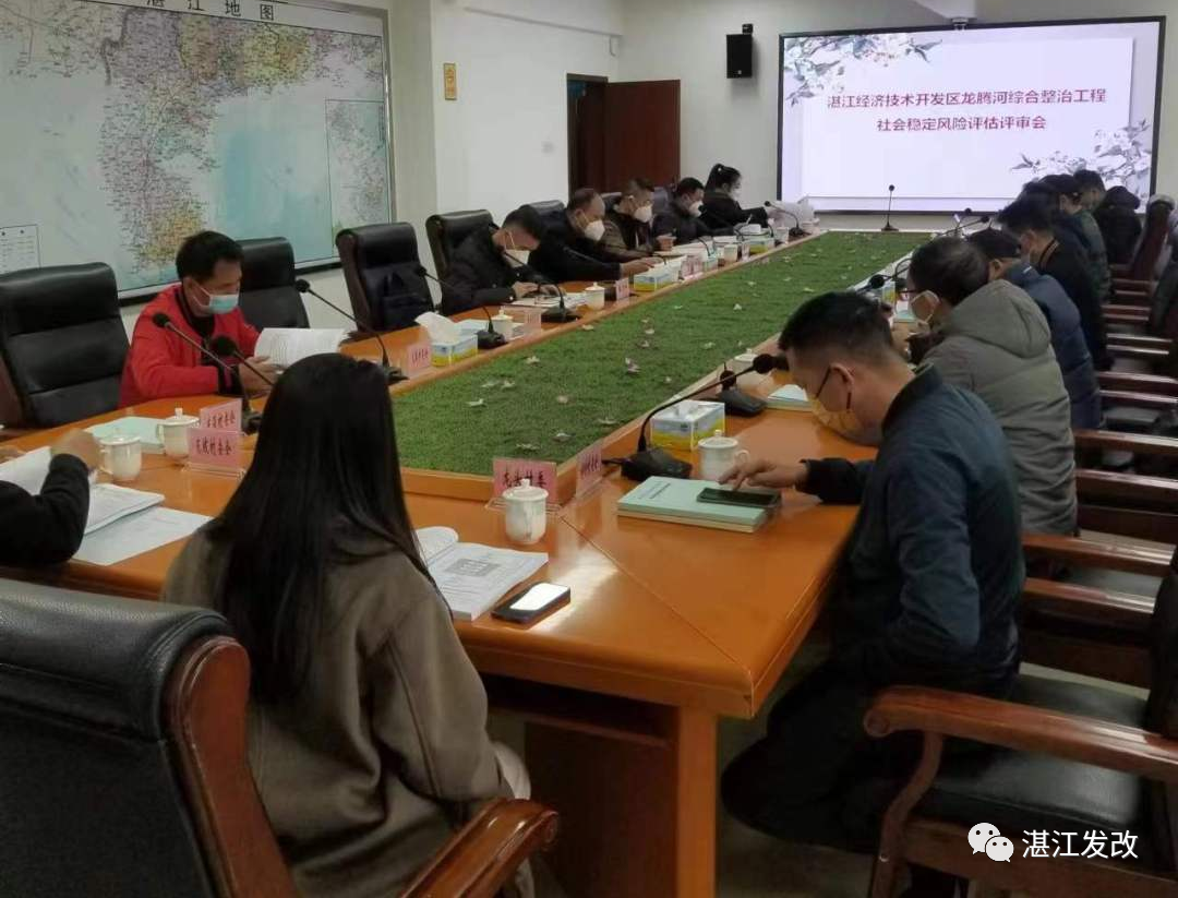 1月18日下午,市发展改革局二级调研员陈华忠同志主持召开湛江市经济开发区龙腾河综合整治工程社会稳定风险评估报告评审会。