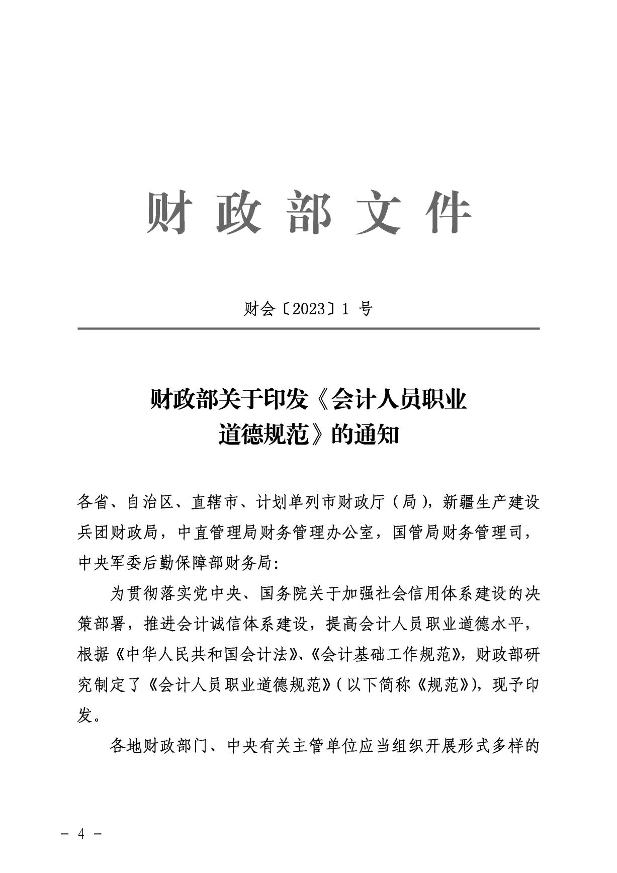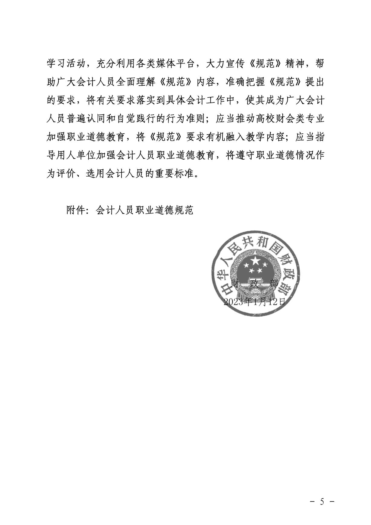 财政部关于印发《会计人员职业道德规范》的通知