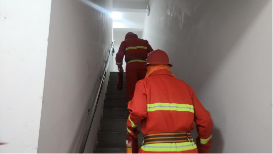 演练活动内容丰富、流程紧凑,涵盖安全逃生演练、伤员救助与转移、灭火器械正确使用教学及实地灭火实操等多个环节。上午9时,随着警报声响起,安全逃生演练正式开始。模拟火情发生后,物业工作人员迅速组织居民用湿毛巾捂住口鼻,弯腰低姿沿安全通道有序撤离。整个疏散过程井然有序,居民们积极配合,充分展现了良好的应急反应能力。