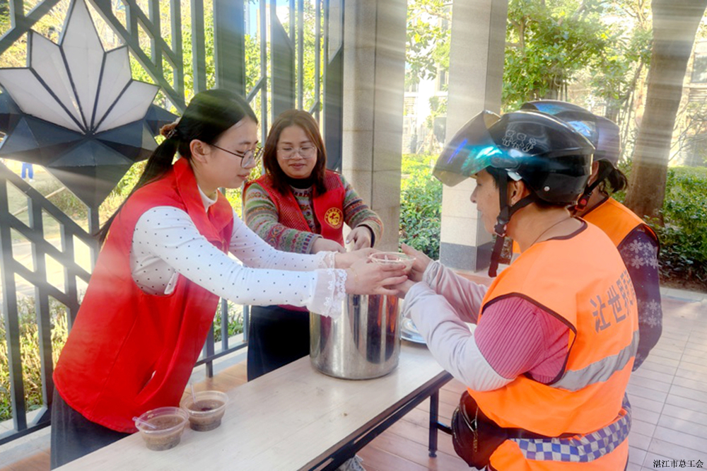 霞山区海港社区工会驿站携手原汇花园开展送粥慰问活动