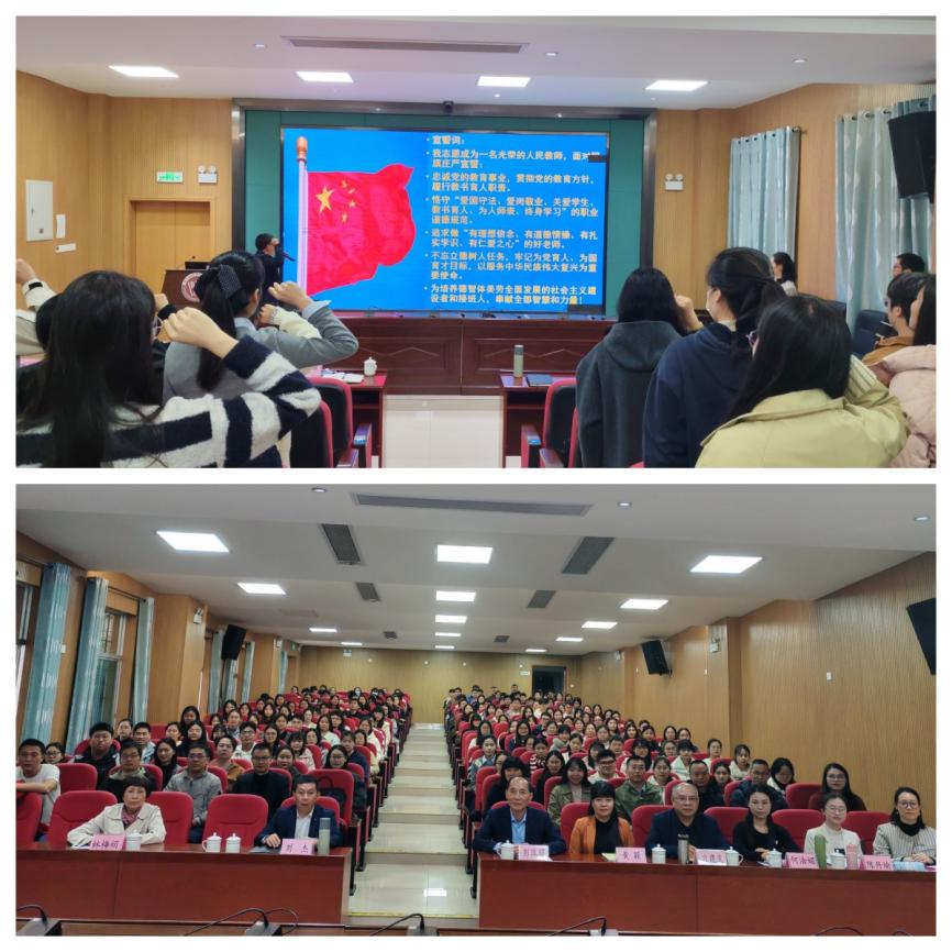 近日,霞山区2025年中小学新教师培训圆满完成。在开班典礼上,区教育局局长彭珠耀出席典礼并作指导讲话,区教育局副局长刘杰带领全体新教师进行庄严的入职宣誓,区教育局人事股为新教师作师德师风专题培训,两位省青教赛优秀教师为新教师做青年教师成长经验分享。本次培训采用“实践浸润+理论提升”两阶段递进式培养模式,旨在全面提升新教师的教育教学能力与专业素养,为霞山基础教育高质量发展注入新生力量。