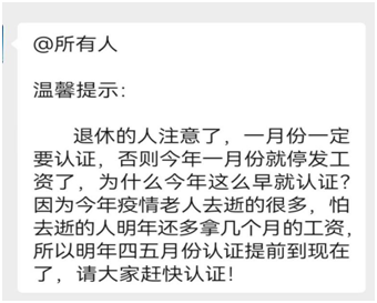 经核实,上述“1月不认证,退休金停发”的不实信息为谣传。