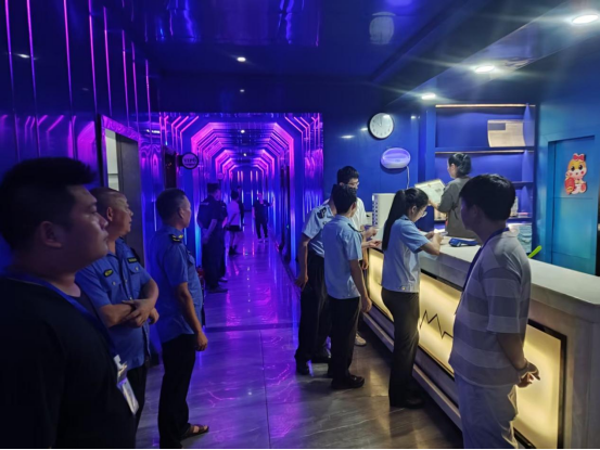 专项整治行动坚持多部门合作,形成监管合力,由文旅体部门牵头,联合公安、市场监管、街道办等部门,对辖区内娱乐场所开展联合整治检查。检查内容涵盖证照是否齐全、是否违规接纳未成年人、是否超时营业、点播系统是否存在违禁曲目等;消防安全设施是否完备、食品卫生是否达标等,以“零容忍”态度整治突出问题,全力营造健康向上的文化消费环境。专项整治行动开展以来共出动执法人员140余人次,检查场所52家次,发出责令改正通知书15份,关停擅自从事娱乐活动经营场所3家,引导2家场所办理《娱乐经营许可证》,发现其他问题12条,已全部完成整改。