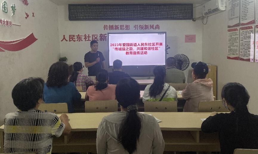 2023年10月12日上午,爱国街道人民东社区开展“传诚信之韵,共建和谐社区”教育宣传活动。