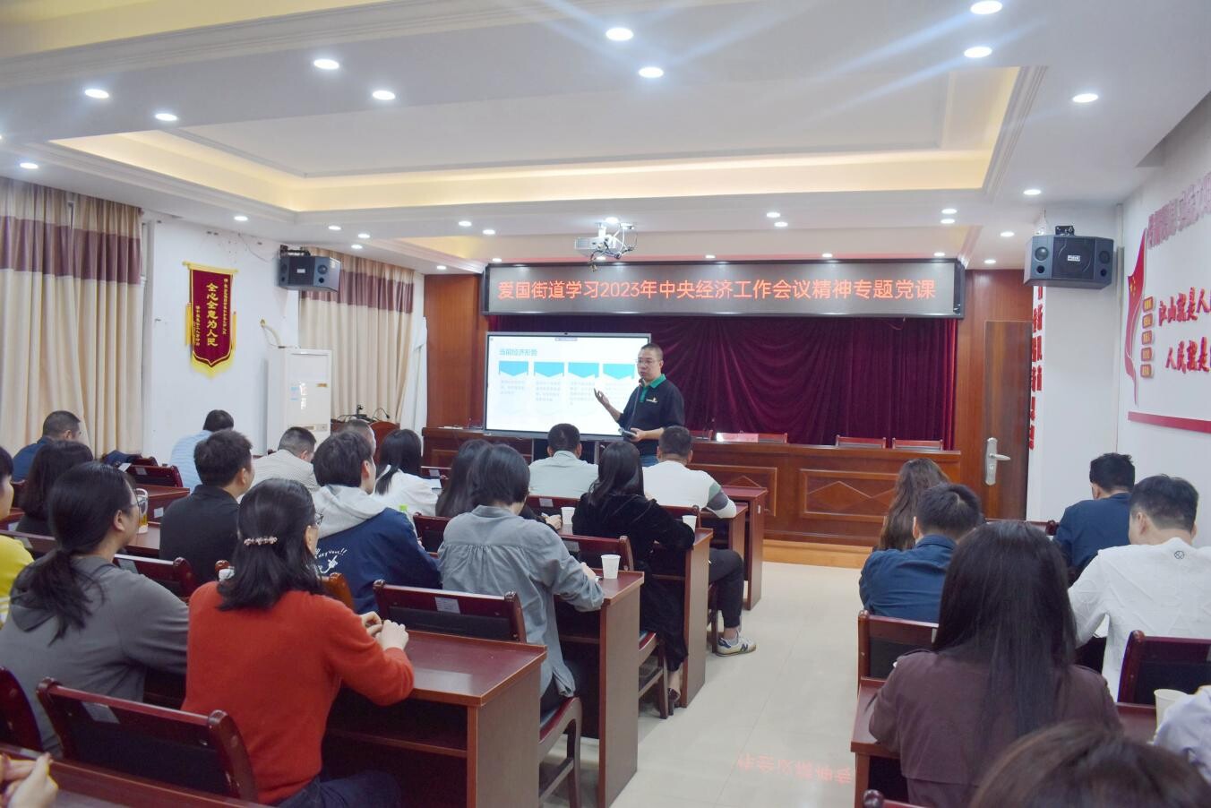 为全面贯彻落实中央经济工作会议精神,引领党员干部职工将思想和行动统一到习近平总书记重要讲话精神和党中央重大决策部署上来,2月21日下午,爱国街道在街道二楼会议室召开学习2023年中央经济工作会议精神专题党课,本次党课由街道党工委书记尤富民同志主讲,街道机关党支部全体党员;各基层党支部书记、副书记;各党(总)支部党员发展对象、入党积极分子共50人参加学习。