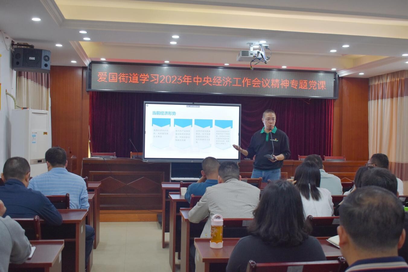 通过本次专题党课,使各支部党员及党员发展对象、入党积极分子对中央经济工作会议精神有了进一步的感悟和理解,对下一步推进工作起到了极大的启迪和引领作用。下一步,爱国街道将更加紧密地团结在以习近平同志为核心的党中央周围,全面贯彻习近平新时代中国特色社会主义思想,深刻领悟“两个确立”的决定性意义,增强“四个意识”、坚定“四个自信”、做到“两个维护”,坚定信心、开拓奋进,努力实现经济社会发展各项目标任务。