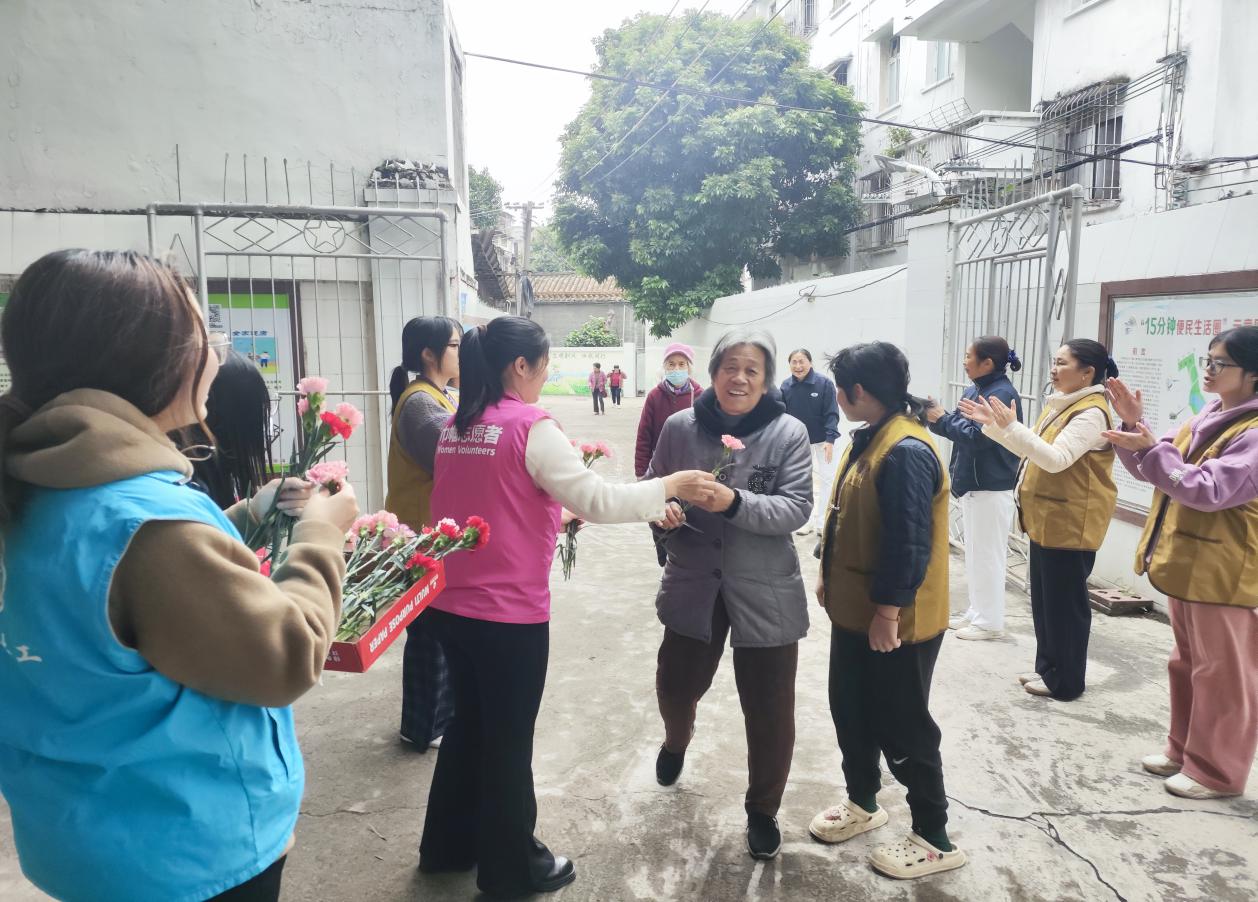 活动在温馨欢乐的氛围中正式拉开帷幕。党员志愿者们早早抵达活动现场,热情地迎接每一位前来参加活动的女性长者,为她们送上节日的祝福与鲜花,现场处处洋溢着欢乐祥和的节日气息。