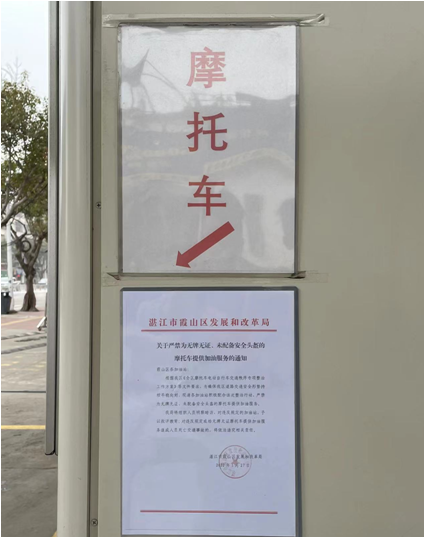 根据“春风利剑”专项行动工作要求,我局高度重视,按照区委区政府统一部署,明确目标,迅速行动,突出重点,多措并举,专项行动工作扎实有序推进。霞山区发改局积极落实推进“春风利剑”行动,制定出《关于严禁为无牌无证、未配备安全头盔的摩托车提供加油服务的通知》,要求区内各加油站按通知要求落实执行,将通知张贴在油站显眼位置,并对流动车辆人群做好宣传教育工作,为保障我区安全生产环境稳定和经济健康持续发展创造良好的经营环境。