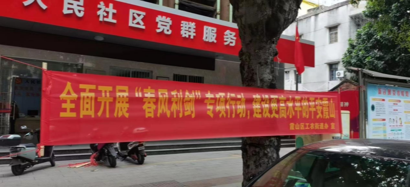 为落实好2023“春风利剑”专项行动工作部署,推进“春风利剑”行动向纵深发展。工农街道高度重视“春风利剑”专项行动宣传工作,通过在工农社区等6个社区(村)人流量大、流动性强的场所悬挂横幅,进一步扩大了“春风利剑”专项行动的宣传效果,为推动更高水平的平安建设营造良好的氛围。