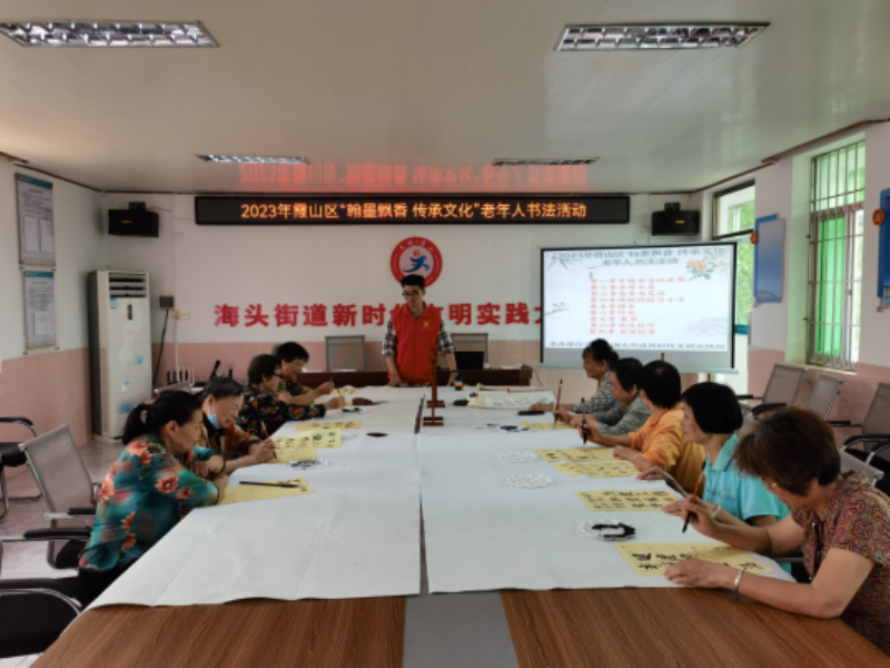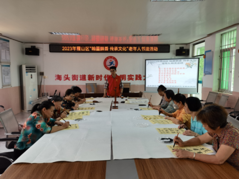 为弘扬中华优秀传统文化,关爱老年人,丰富老年人业余文化生活,海头街道新时代文明实践所开展“翰墨飘香传承文化”老年书法活动。笔墨养心净气修身。写毛笔字可以帮助老年人保持心态上的平和,在持笔,运笔,润笔的一系列过程中,锻炼思维能力和想象力。 活动中,文明实践志愿者边讲授书写时的正确坐姿及执笔姿势技巧,边让大家通过基础笔画的练习找到书写毛笔字的感觉。书写过程中,大家互相学习,互相鼓励,现场气氛融洽。