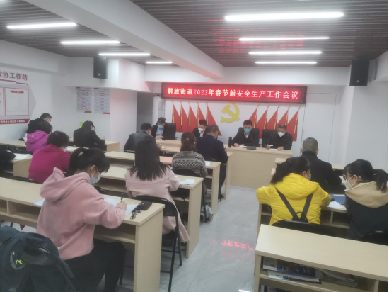 2023年1月12日,解放街道在街道二楼会议室召开春节前安全生产会议,参加人员有街道班子、中层干部及社区书记、社区分管安全生产干部。本次会议由街道党工委书记林耀伟主持。