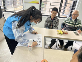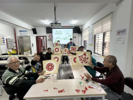 本节活动带领组员走进传统剪纸艺术。社工耐心演示了将红纸剪成“花”的基础技法。从对折、描画到裁剪,组员们全神贯注,相互观摩。过程中,引导员提供一对一协助,鼓励大家克服“有点难”的初体验。当成型的红色“花”在手中展开时,组员们脸上洋溢着惊喜与成就感,纷纷分享“看到成品很开心”的喜悦。