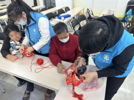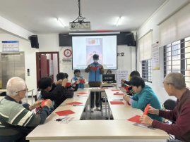 活动升级至团队协作环节。本节学习利用红包制作立体灯笼。社工逐步演示折叠、定位、组装的过程。面对稍显复杂的步骤和订书机使用等挑战,组员间自然形成了“互助小组”,经验者主动指导,新手积极尝试。当两个“十”字部件成功组合成饱满的灯笼造型时,现场充满赞叹。分享环节中,组员们不仅交流了技术难点,更体会到互相帮助带来的高效与温暖。