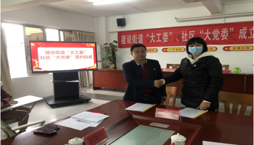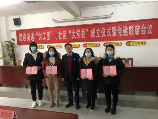 街道党工委书记黄华耀为街道及各社区颁发聘书并签订协议。黄华耀书记表示,建立健全街道“大工委”、社区“大党委”工作机制,规范街道“大工委”、社区“大党委”组织设置,构建以街道党工委为核心,社区党组织为基础,驻区单位、行业党组织共同参与的城市基层大党建格局。通过组织联建、党员联管、资源联用、服务联办等形式,整合资源力量,创新管理模式,强化服务载体,奋力开创“条块结合、资源共享、优势互补、共驻共建”的城市基层党建工作新局面。