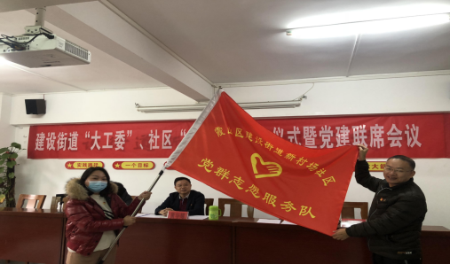 街道党工委副书记、办事处主任朱小敏宣读《关于同意成立建设街道“大工委”的通知》《关于同意成立建设社区“大党委”的通知》《关于同意成立建兴社区“大党委”的通知》《关于同意成立建西社区“大党委”的通知》《关于同意成立新村场社区“大党委”的通知》。并为各社区“大党委”授予党群志愿服务队旗。
