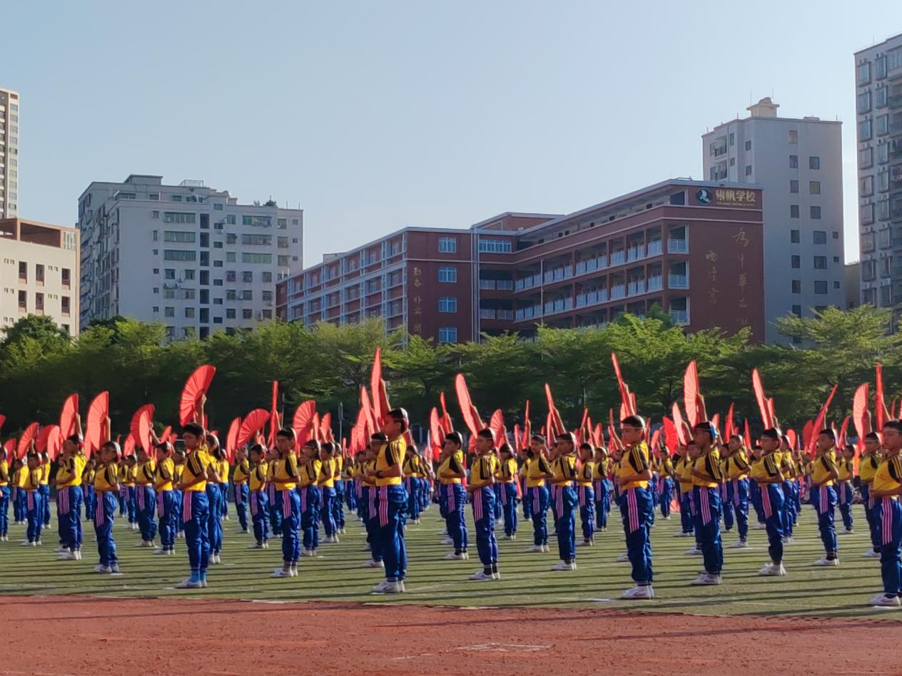 开幕式以一场精彩的表演开场,来自湛江市少林学校学生表演的《扇子操》《脸谱操》和《龙腾虎跃庆吉祥》等节目,整齐划一、精彩绝伦、铿锵有力,给大家带来不一样的视觉盛宴,让在场观众为之喝彩。