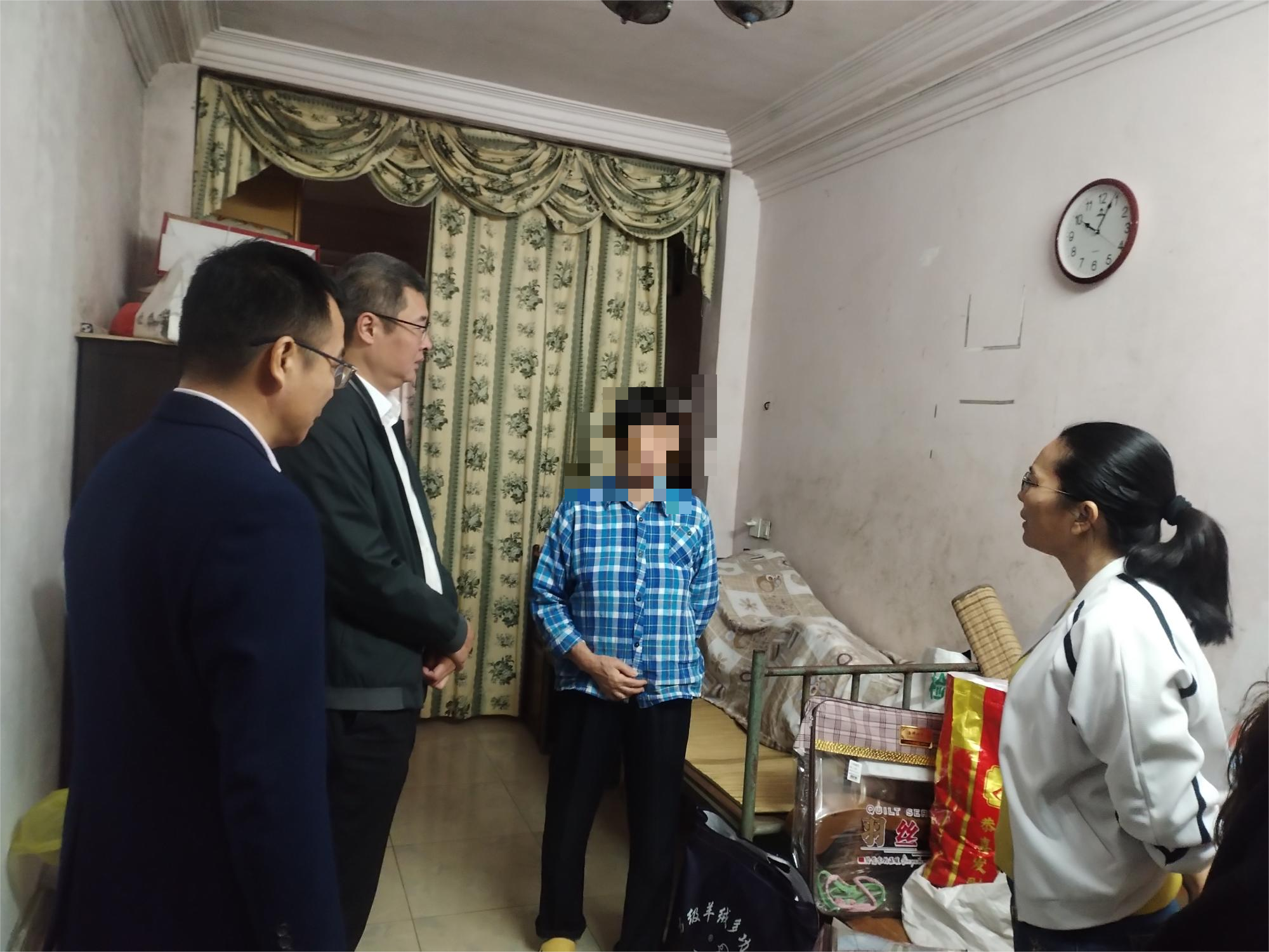 为做好低温冰冻天气期间困难群众的防寒保暖工作,慰问过程中,林小斌局长与困难群众面对面亲切交谈,详细询问他们最近的身体状况和生活等情况,了解他们生活中存在的实际困难,叮嘱困难群众在寒潮来临之际要注意防寒保暖。