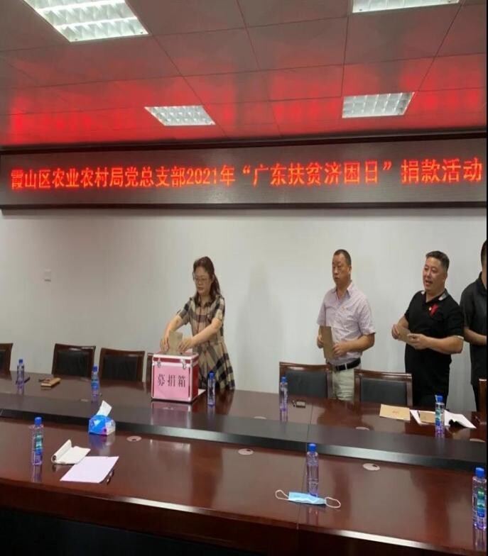 在2021年“广东扶贫济困日”即将到来之际,霞山区农业农村局党总支部于6月28日上午,在区政府1号楼12楼会议室举行霞山区农业农村局党总支部2021年“广东扶贫济困日”捐款活动,旨在巩固脱贫成果,助力乡村振兴。霞山区农业农村局及所属5个单位的全体党员干部及职工代表共38人到现场参加募捐活动。